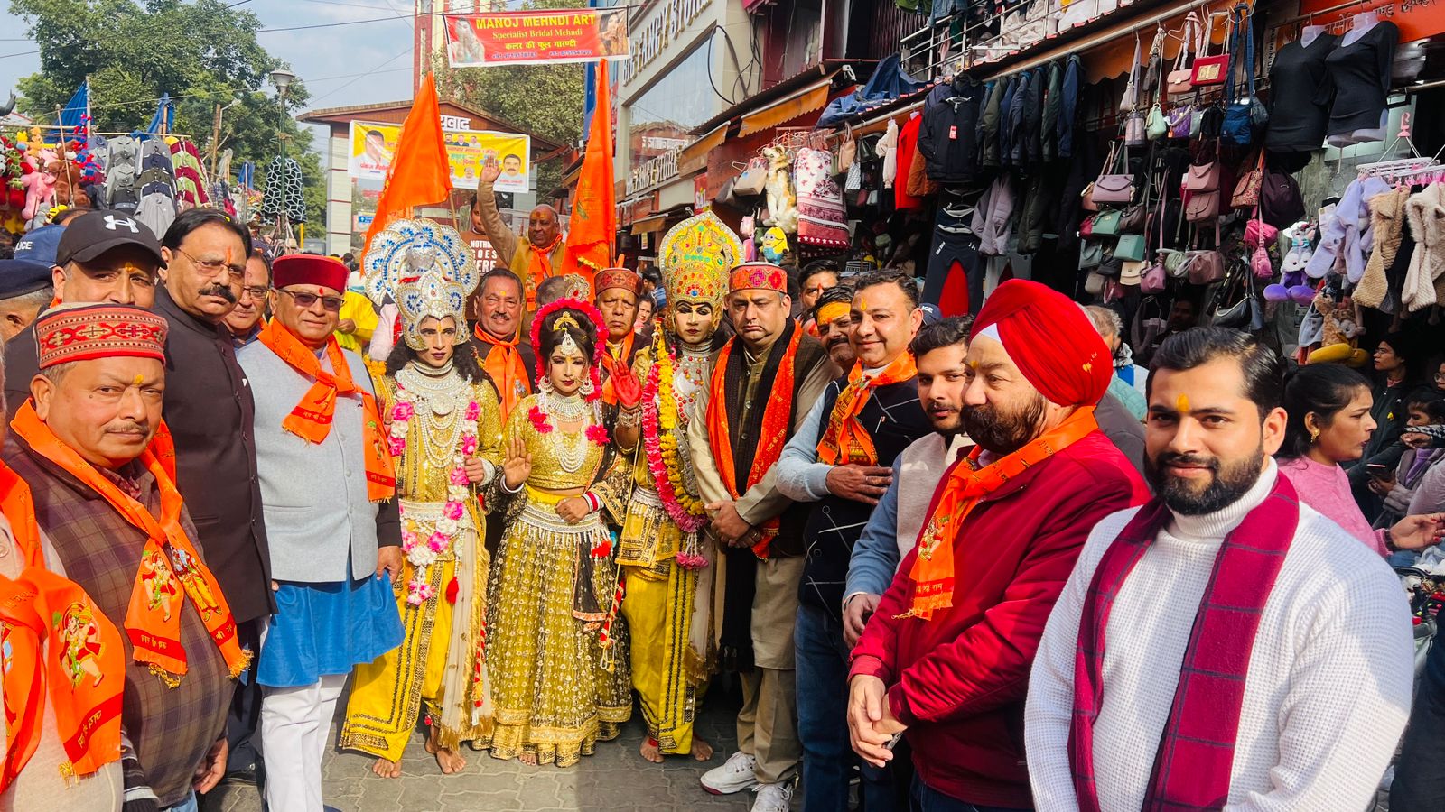दिनांक 11/01/2025 को अयोध्या में श्री राम मंदिर निर्माण के प्रथम वर्ष पूर्ण होने पर दून वैली महानगर उद्योग व्यापार मंडल अध्यक्ष पंकज मेसोंन एवं कार्यकारिणी की ओर से एक यात्रा का आयोजन किया गया यात्रा में श्री राम जी, श्री लक्ष्मण जी, श्रीमती सीता जी, और हमारे बाहुबली हनुमान जी की झांकी मुख्य आरक्षण रहा और साथ ही एक जीप में अयोध्या राम मंदिर का मॉडल सजा हुआ इस यात्रा में साथ चलता रहा और ढोल ताशो और डीजे के साथ बहुत ही सुंदर यात्रा निकाली जिसमे सभी व्यापारी भाइयों ने बढ़ चढ़ कर हिस्सा लिया इस यात्रा में राजपुर विधायक श्री ख़ज़ान दास जी, राज्यमंत्री श्री विश्वास डावर जी, पूर्व राज्यमंत्री श्री अशोक वर्मा जी ने भी पहुँचकर आशीर्वाद ग्रहण किया और व्यापारीयों को सफल यात्रा की बधाई एवं शुभकामनाएँ प्रेषित की और यात्रा में खूब डांस करते हुए व्यापारियों का उत्साह वर्धन किया।*