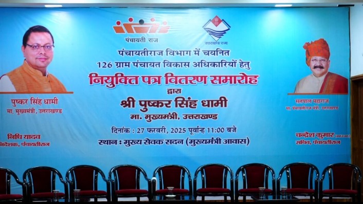 मुख्यमंत्री पुष्कर सिंह धामी ने मुख्यमंत्री आवास देहरादून स्थित मुख्य सेवक सदन में पंचायतीराज विभाग के अन्तर्गत 126 नवनियुक्त ग्राम पंचायत विकास अधिकारियों को नियुक्ति पत्र प्रदान किये। पिछले साढ़े तीन सालों में राज्य में 20 हजार से अधिक युवाओं को सरकारी सेवाओं में नौकरी प्रदान की गई है। मुख्यमंत्री ने सभी
