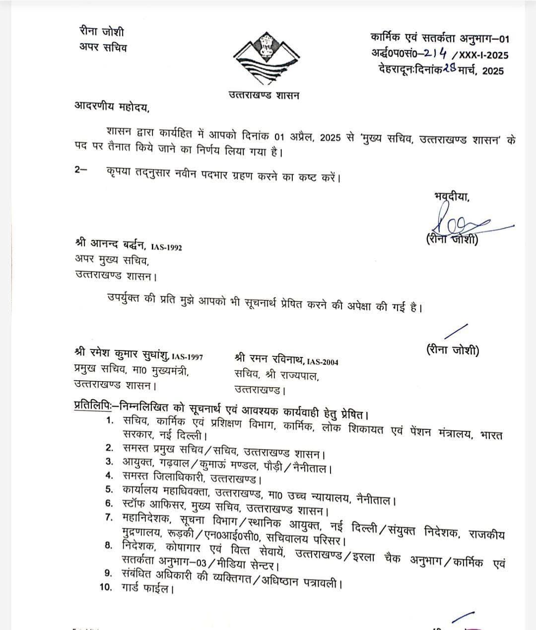 1 अप्रैल 2025 से मुख्य सचिव के तौर पर कार्य करेंगे आनंद बर्धन